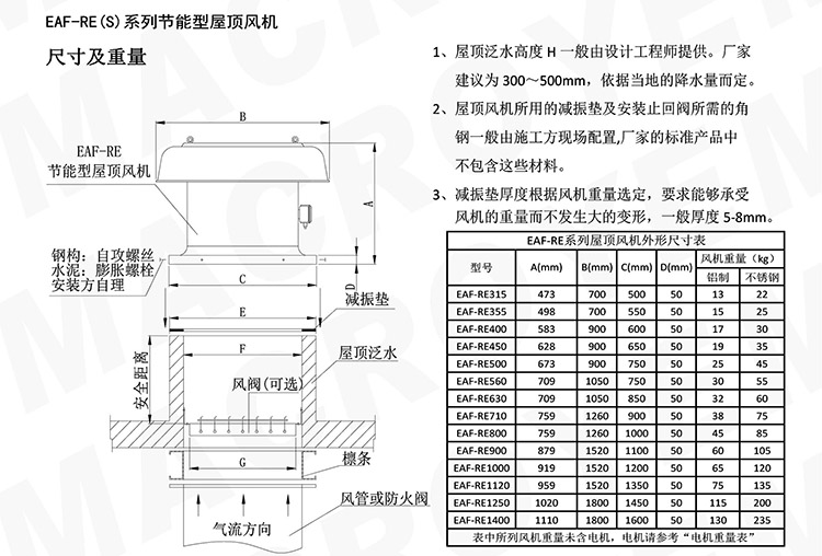 1.风机一般采用直联传动,重量轻、免维护、使用可靠,用于屋顶排风。